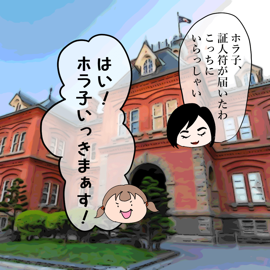 証人符を渡されるホラ子