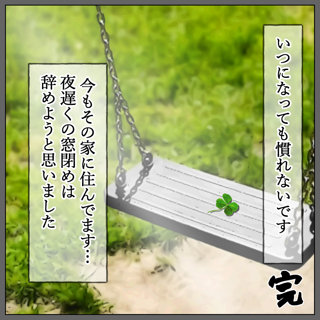 先読み『夜の窓閉めにはご注意を』第③話 2023年07月07日 先読み『夜の窓閉めにはご注意を』第③話今回は2人の子を持つ母親、リコさんの体験です😊🙌ある夏の夜。ふと目を覚ますと、寝苦しそうな子どもたちが。エアコンを付けるために窓を締めに行くが…。>>先読み『夜の窓閉めにはご注意を』第①~②話『夜の窓閉めにはご注意を』第①話>>先読み『夜の窓閉めにはご注意を』第①~②話>>前回はこちら『誰が嘘をついてる?』第㉕~㉖話>>他の作品はこちら『黒い人』第③~④話>>他の作品はこちら「電車でSNSを開いただけなのに』※第①話>>他の作品はこちら『皆が私を知っている』第①~②話>>インスタはこちら < 前の記事次の記事 > コメント コメントフォーム 名前 コメント 記事の評価 リセット リセット 顔 星 情報を記憶 コメントを投稿する